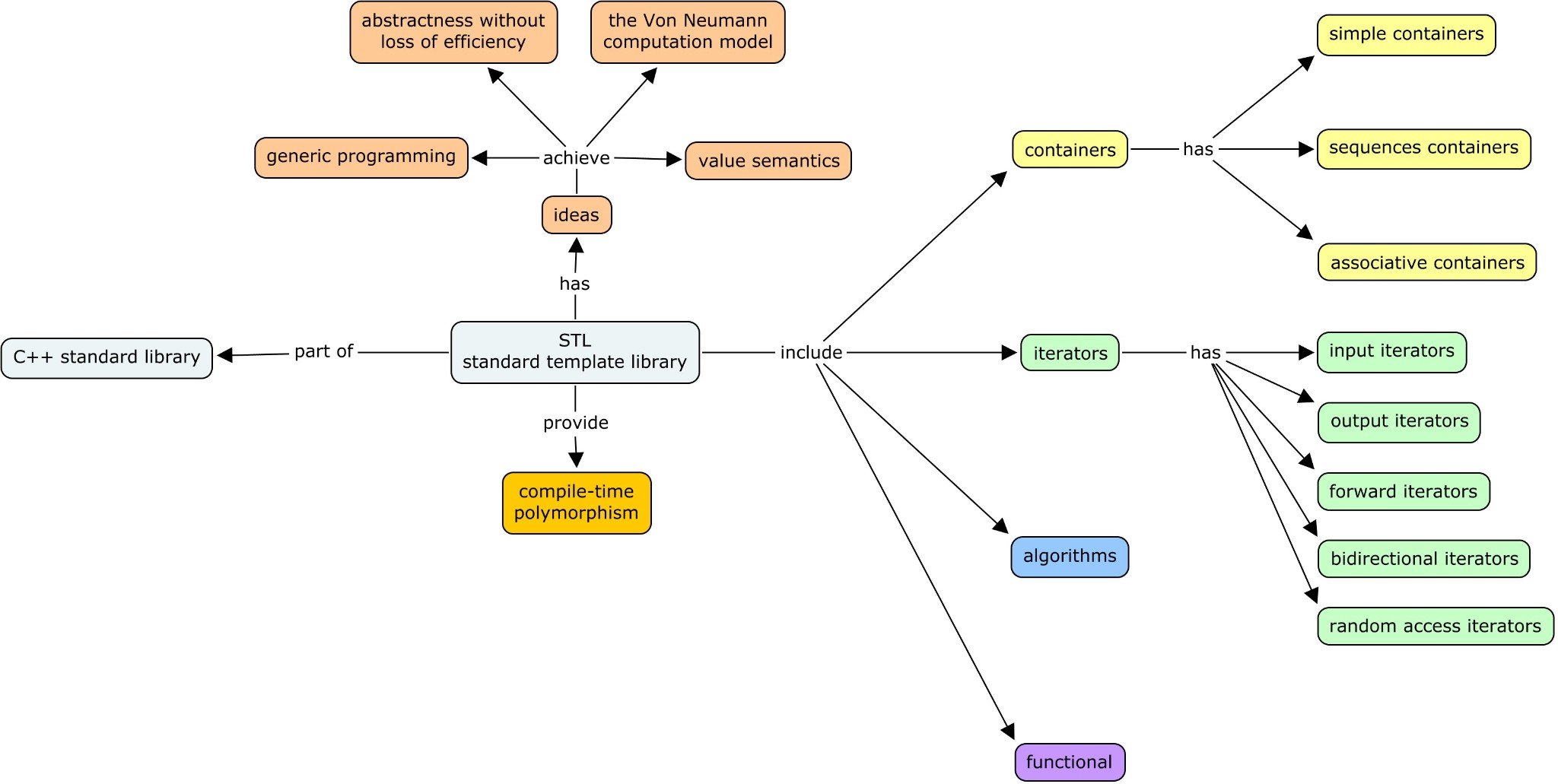 The STL was created as the first library of generic algorithms and data structures for C++, with four ideas in mind: generic programming, abstractness without loss of efficiency, the Von Neumann computation model, and value semantics.